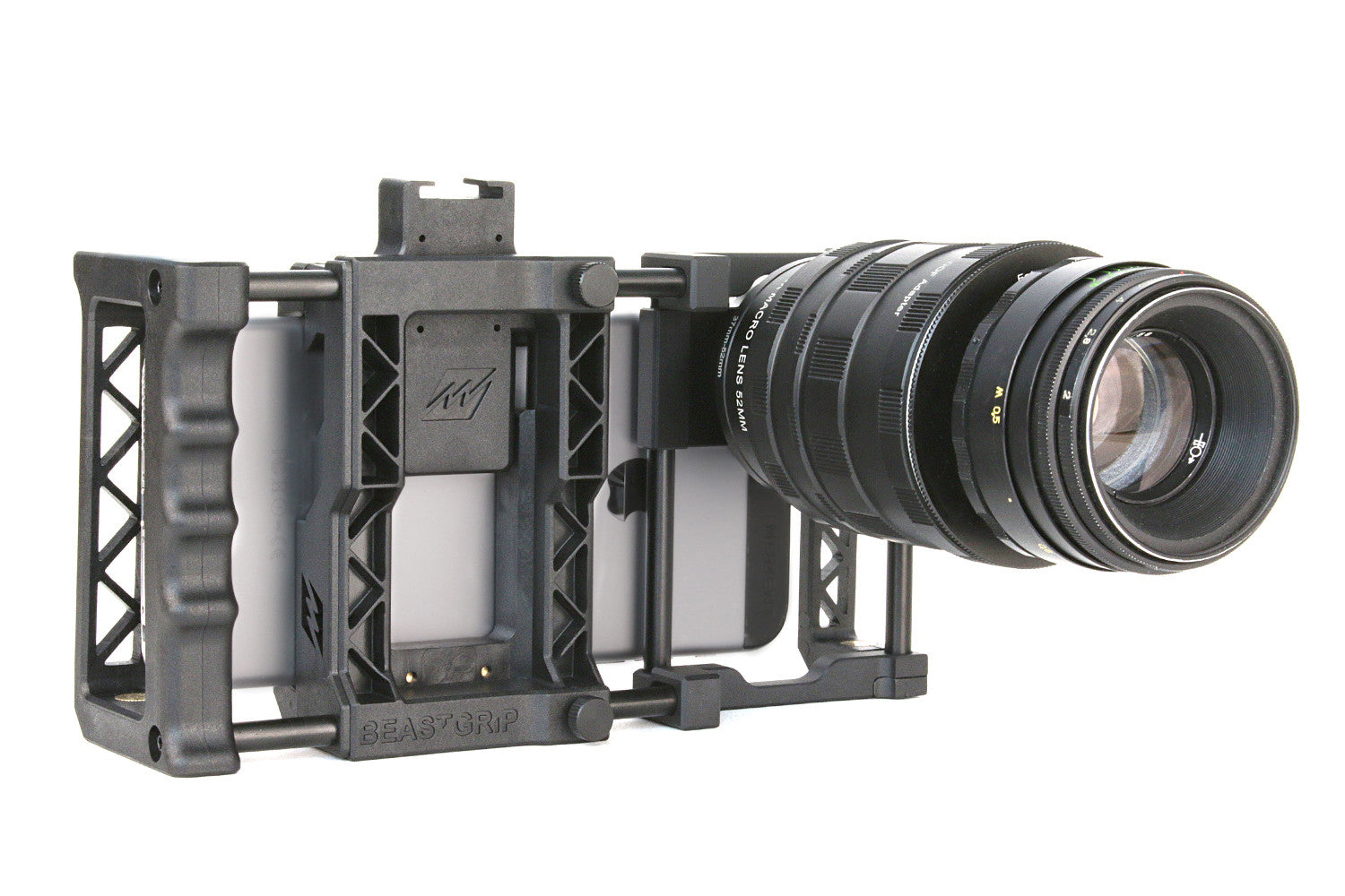 The Beastgrip DOF (Depth Of Field) adapter allows you to use SLR/DSLR lenses with your smartphone to achieve a shallow depth of field effect and manual focus control.